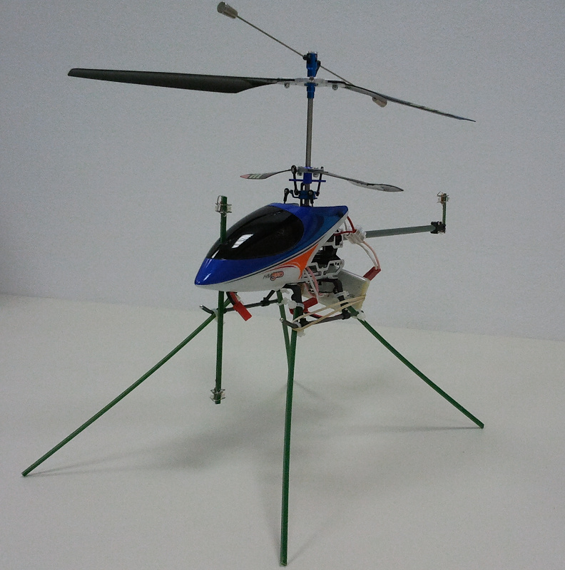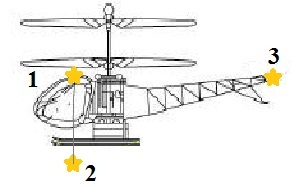 The current sensor application is much more accurate and simple due to the use of infrared markers on the helicopter and filters in the cameras. The figure on the right shows the actual led distribution. They are placed in the middle of the longitudinal axis of the helicopter making a right-angled triangle.