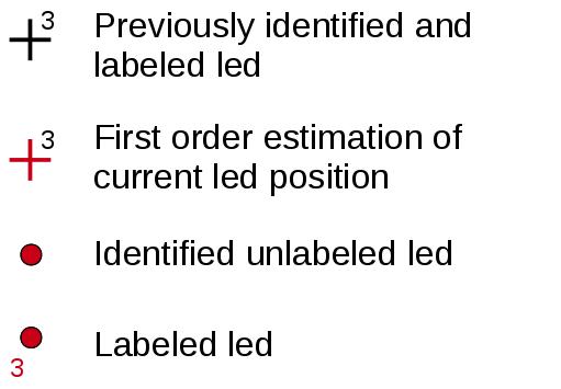 The only problem left is the identification of each led, i.e. the correct labeling of leds 1, 2 and 3 frame after frame. In order to be able to make an accurate identification, the helicopter needs to be initially placed so that led 2 lies under led 1 (which is a natural starting position).